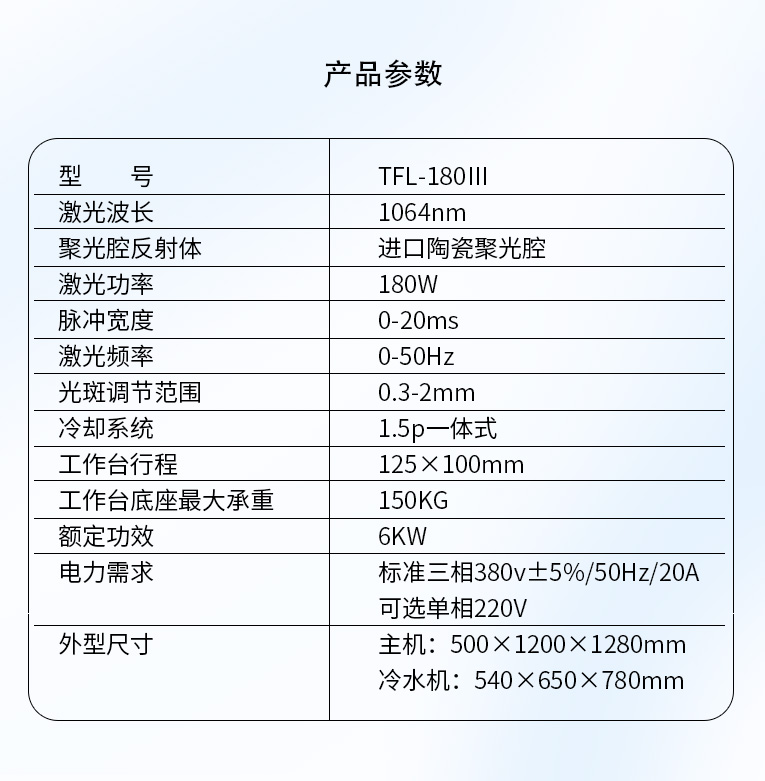 普通型模具激光焊機TFL-180Ⅲ是通發(fā)激光公司的模具激光焊機中銷量較大的傳統(tǒng)型,配置激光頭手搖升降與工作臺按鈕電動升降實現(xiàn)焊接不同厚度模具的激光焊加工。本系列機型適用于各類精密注塑模具激光補焊、壓鑄模具激光修補焊接;同時也適合鑄件沙孔激光修補、模具磨損激光修復(fù)、過切加工等的激光修補;各類金屬結(jié)構(gòu)件激光焊接加工、金銀首飾激光焊接加工。