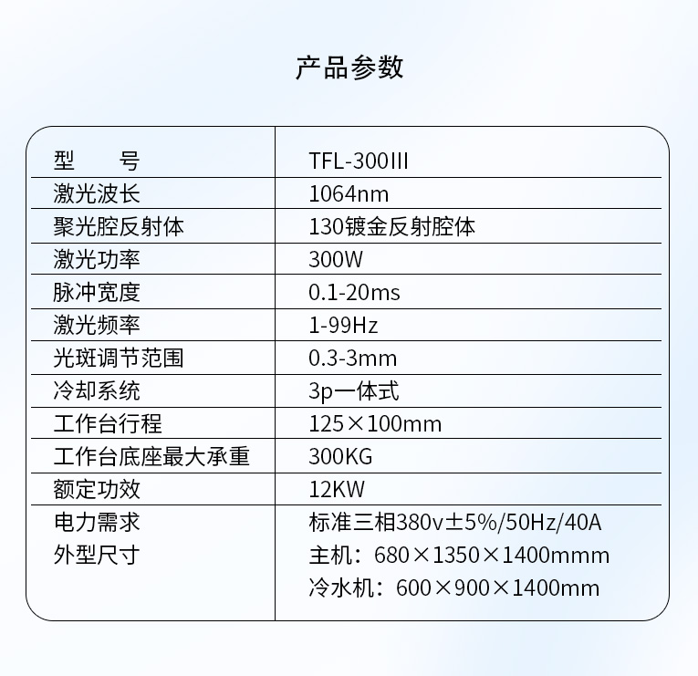TFL-300Ⅲ型模具激光焊機(jī)是通發(fā)激光公司自主研發(fā)的一款大功率激光焊接機(jī),采用通發(fā)自主研發(fā)的二代精密雙燈電源為燈泵浦驅(qū)動(dòng)電源,配置觸摸屏,操作更方便。主機(jī)具備激光頭手搖升降與工作臺(tái)按鈕電動(dòng)升降實(shí)現(xiàn)焊接不同厚度模具的激光焊加工。本款機(jī)型更適用于各類(lèi)大功率、大面積激光修補(bǔ)的模具。由于激光功率大,同時(shí)可激光焊接鈹銅模具,鋁材模具或鋁材零件。在大面積激光修補(bǔ)模具時(shí),可以使用更粗的焊絲,激光焊接效率大幅提升。