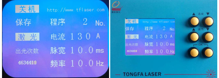 2、本首飾激光點焊機軟件可選擇中文或者英文界面,對不同加工位置選擇相應(yīng)的激光焊接加工參數(shù)。由選擇按鈕移動光標到相應(yīng)的參數(shù)位置,由調(diào)節(jié)按鈕調(diào)節(jié)參數(shù)的大?。?